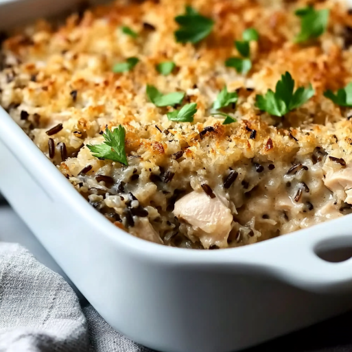 Indulge in the comforting flavors of Chicken Wild Rice Casserole, a creamy and cheesy dish that’s perfect for family dinners or gatherings. This casserole combines tender chicken, earthy wild rice, and savory mushrooms, all enveloped in a rich sauce topped with crispy breadcrumbs. It’s not only easy to prepare—ready in just one hour—but also versatile enough to serve as a main course or a delightful side dish. Make it ahead of time and pop it in the oven when you’re ready to enjoy a hearty meal that everyone will love.