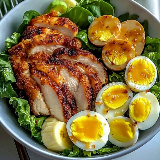 Crispy Chicken & Egg Salad Bowl with Fresh Banana & Greens is an exciting dish that offers a delightful mix of flavors and textures. This recipe features juicy pan-seared chicken breast paired with creamy hard-boiled eggs, sweet banana, and fresh greens. Perfect for a quick lunch or a light dinner, this salad bowl is both energizing and satisfying. You’ll love how the savory chicken complements the sweetness of the banana, making it a unique addition to your meal rotation.