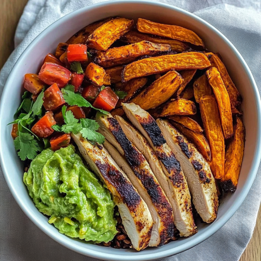 The Grilled Chicken Power Bowl with Sweet Potato Fries & Fresh Guac is a wholesome and delicious meal perfect for any occasion. This dish combines tender grilled chicken, crispy sweet potato fries, and creamy guacamole, making it a standout choice for lunch or dinner. Its vibrant ingredients not only provide a burst of flavor but also pack in nutrition, ensuring you feel energized and satisfied. Whether you’re hosting friends or enjoying a quiet night at home, this power bowl is a delightful option that caters to everyone’s taste.