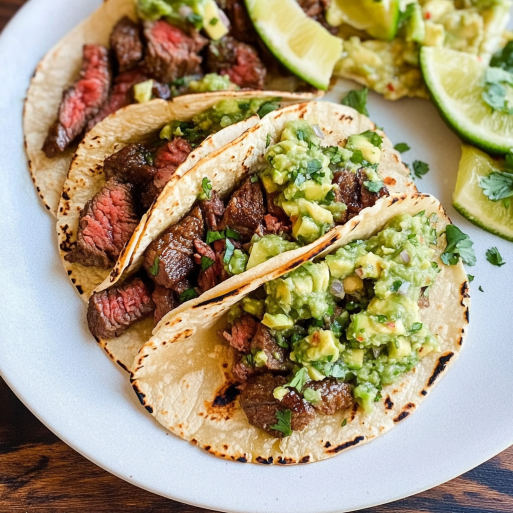 Indulge in the smoky and juicy goodness of Grilled Steak Tacos with Avocado Salsa. This vibrant dish combines tender marinated steak with a zesty avocado salsa, making it perfect for summer gatherings or a quick weeknight dinner. With a burst of flavor in every bite, these tacos are not only visually appealing but also packed with fresh ingredients that will impress your family and friends alike. Plus, they can be easily customized to suit any palate!