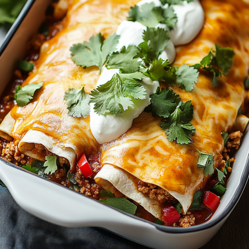 Ground Beef Enchiladas are a delightful dish that combines savory ground beef, zesty sauce, and gooey cheese all wrapped in soft tortillas. They are perfect for family dinners or gatherings and are sure to satisfy everyone at the table. The blend of flavors and textures makes these enchiladas stand out, offering comfort and deliciousness in every bite.